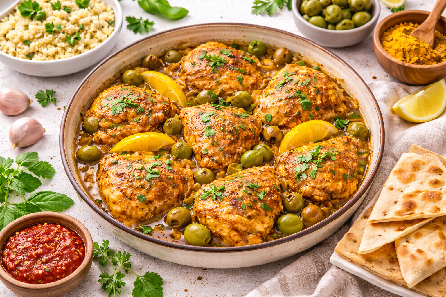 Nos recettes Poulet aux Olives Découvrez cette recette savoureuse et parfumée de poulet aux olives Découvrir Poisson aux Olives Violettes Découvrez cette recette savoureuse et parfumée du Poisson aux Olives Violettes Découvrir
